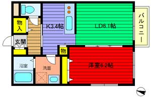 | 設 備 エアコン・給湯・ガスK・フローリング調CF・洗濯機室内・駐輪場・バストイレ別 | ||||